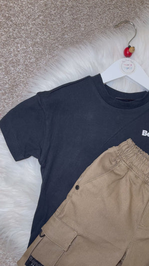 BROOKLYN black & beige cargo trousers bench set