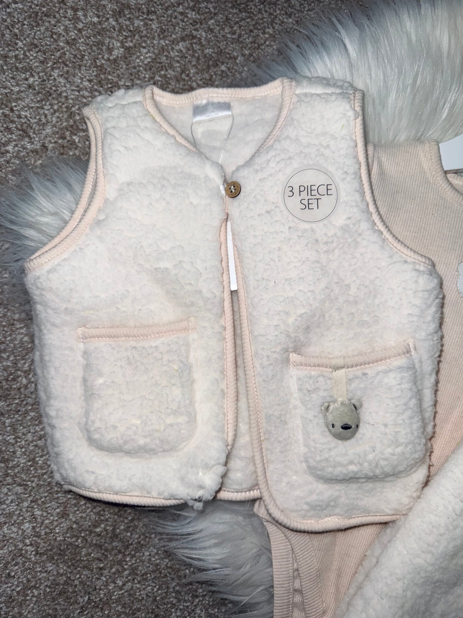 CAM fluffy gilet, top & trouser 3pc set